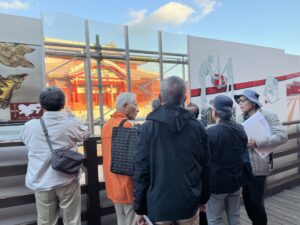 第1回首里城再建見学ツアーと銘打ち、首里城でツアーガイドをされている照喜名支部長の案内でいよいよ姿を見せた首里城正殿を中心に見学させて頂きました。